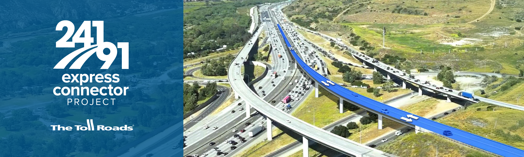 The 241/91 Express Connector is a planned direct connector project from the northbound 241 Toll Road to the eastbound 91 Express Lanes and from the westbound 91 Express Lanes to the southbound 241 Toll Road. Drivers using the Express Connector from the northbound 241 Toll Road to the eastbound 91 Express Lanes will be able to exit near the county line to access Corona destinations or continue on to Interstate 15 and Riverside County destinations. The 241/91 Express Connector new route choice will be part of The Toll Road network once completed, resulting in enhanced traffic operations and mobility benefits.